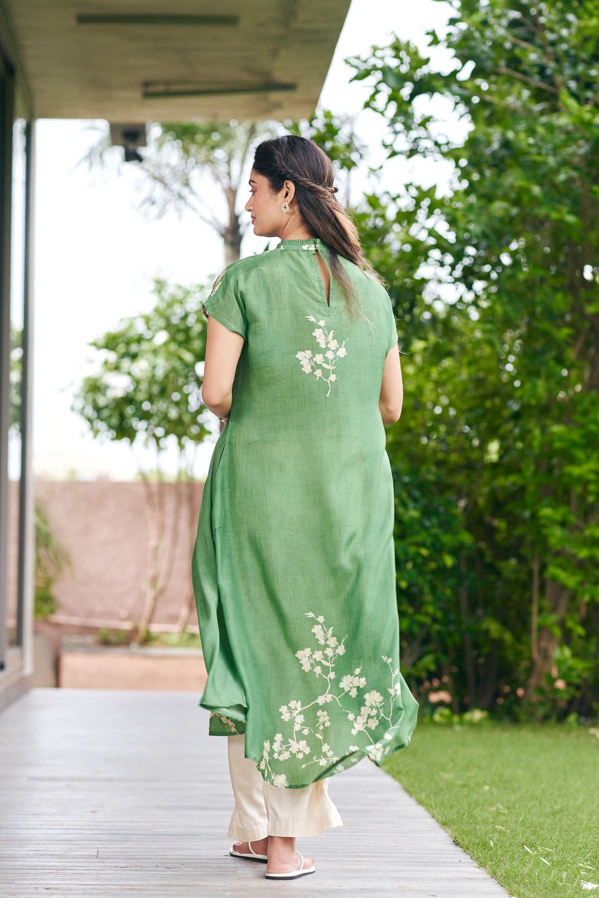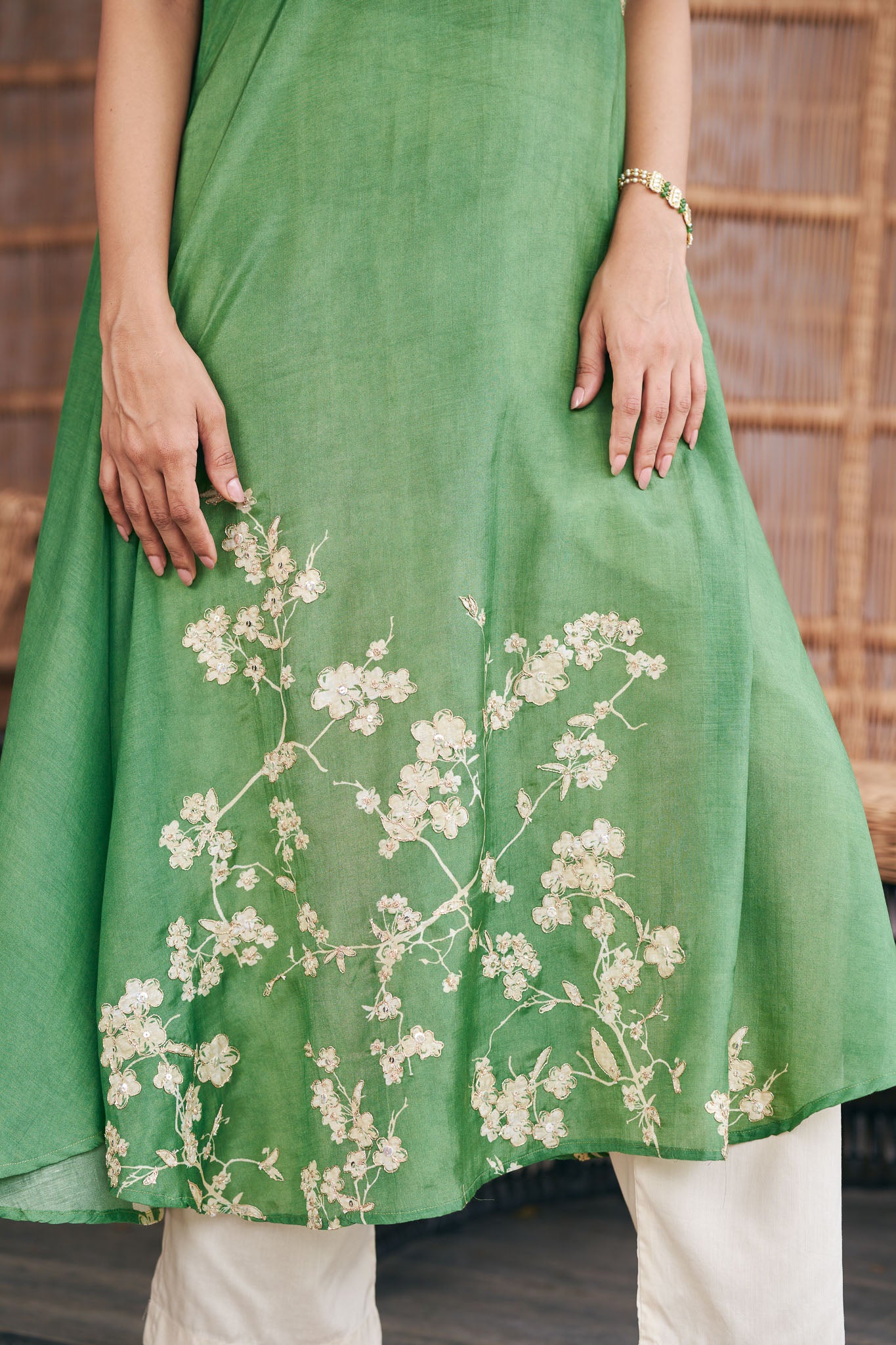 Green High Neck Floral Festive Kurta Set