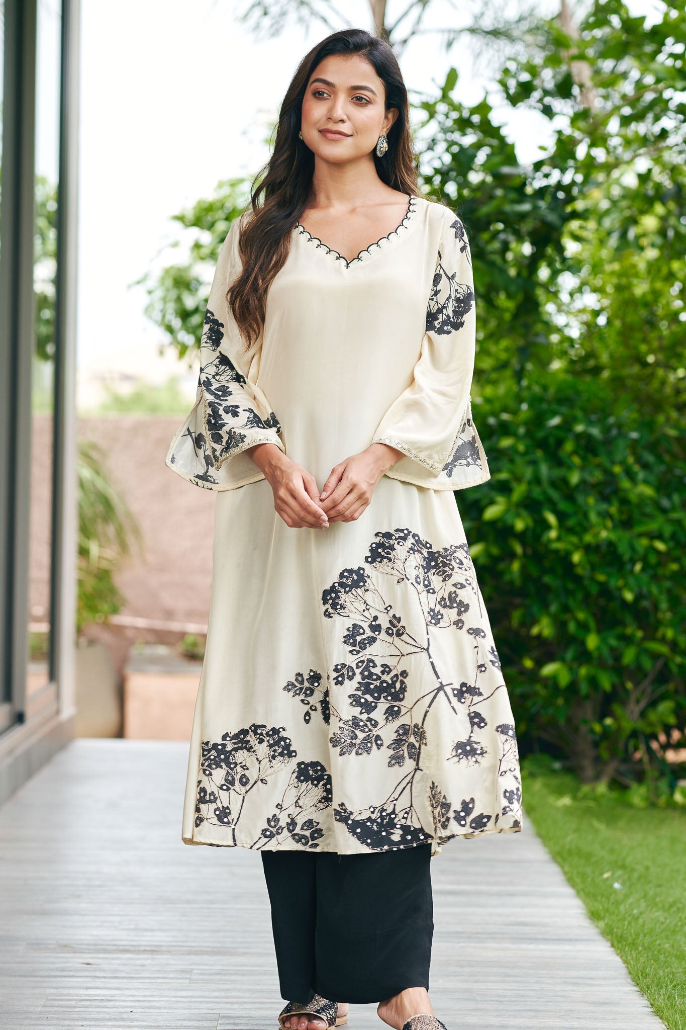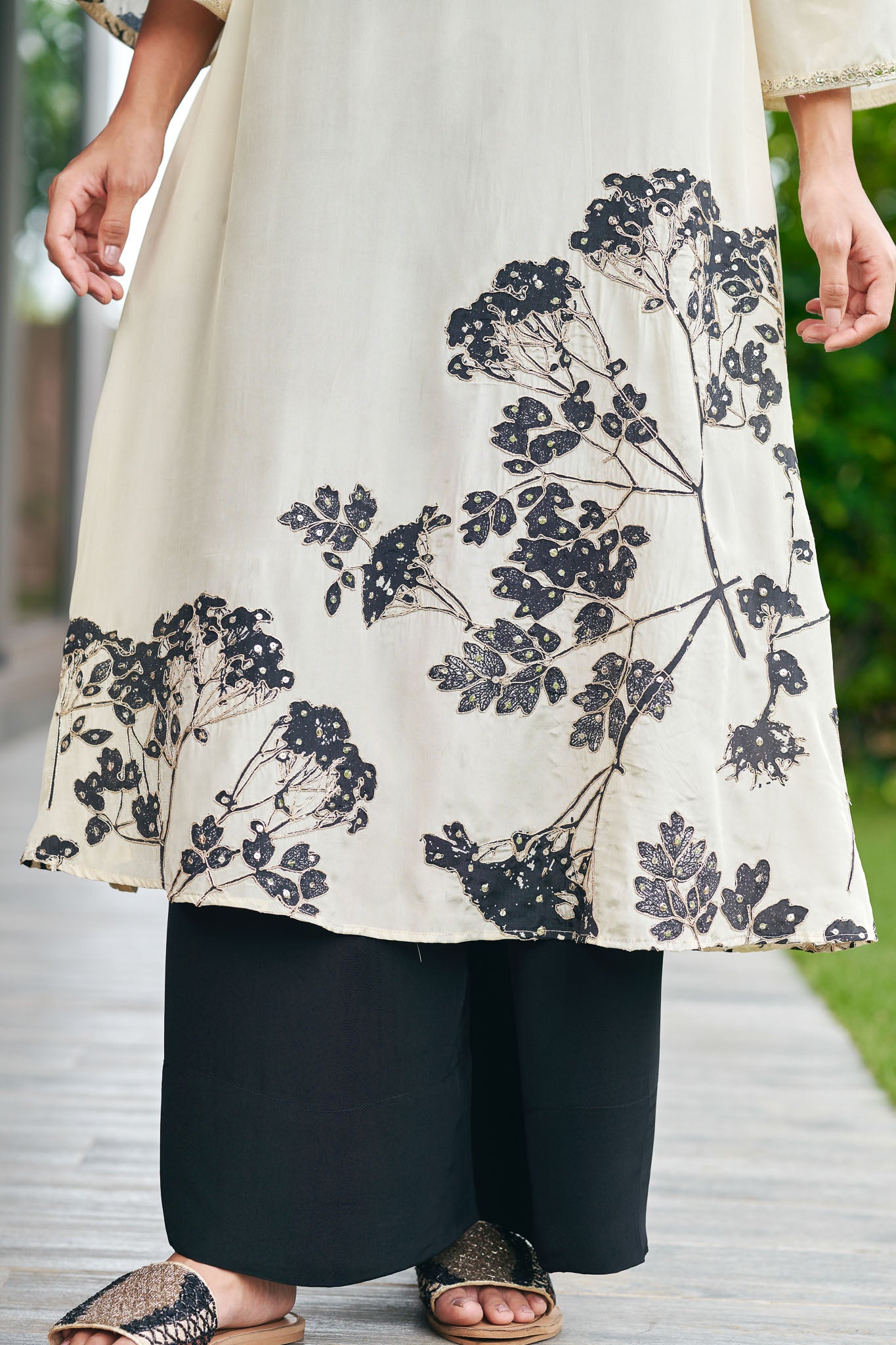 Scalloped Neck Straight Kurta Set With Inseam Pockets Emblissed With Dori And Sequience Paired With Solid PantsFabric: