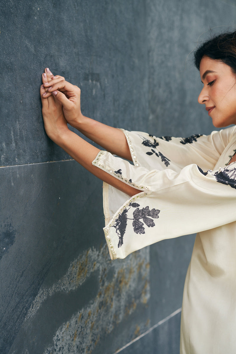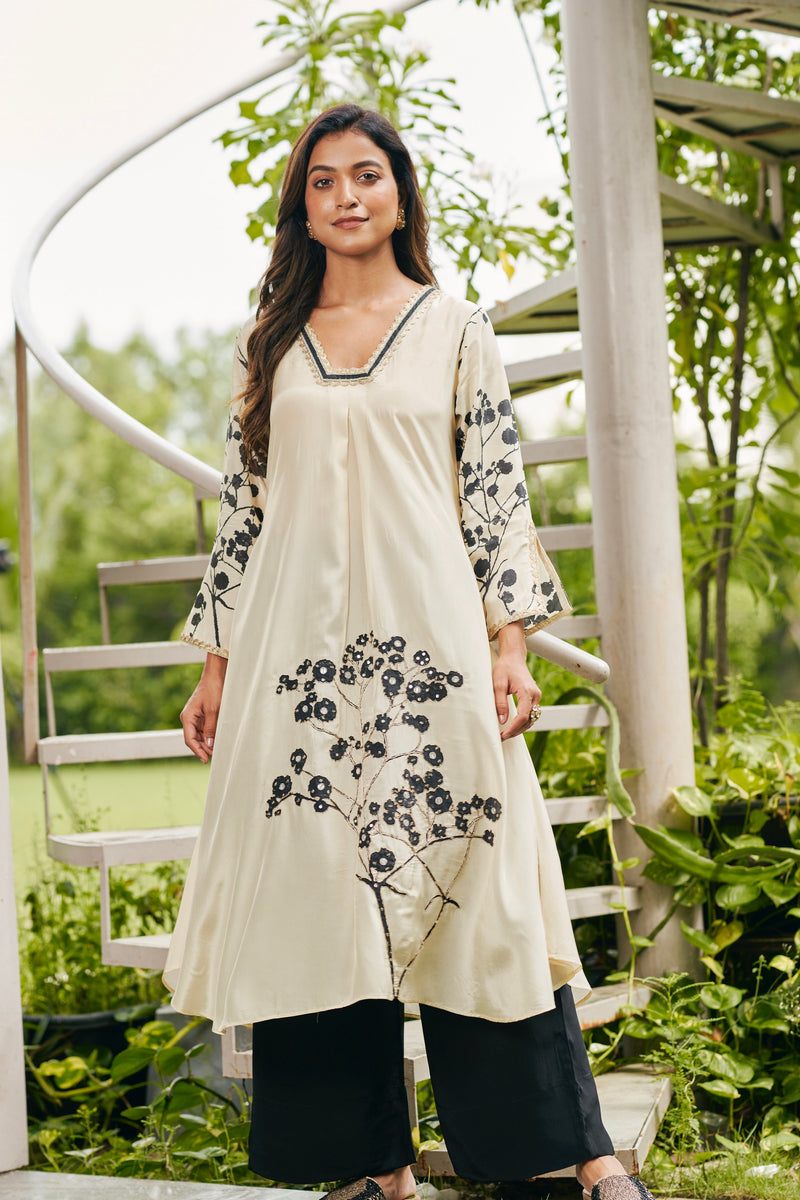 Ivory Black Floral Sleeve Kurta