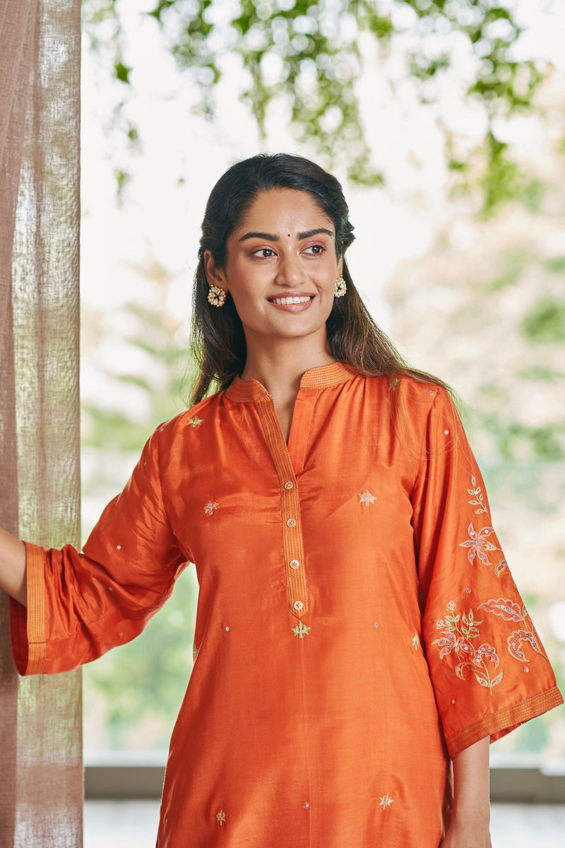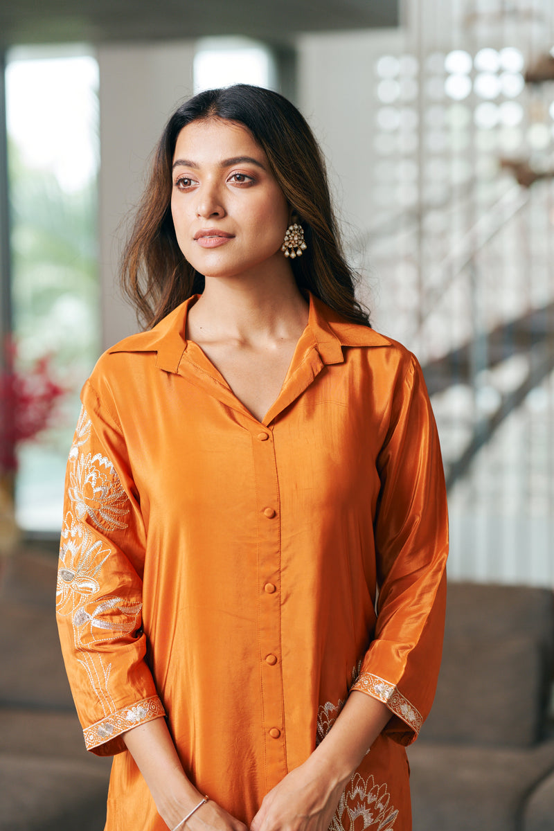 Orange Natural Crepe Shirt Style Kurta Set