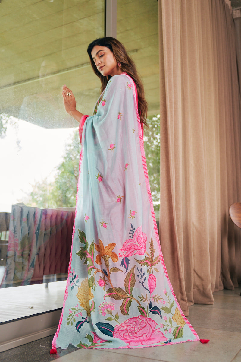 Powder Blue Hand Embroidered Kurta Set