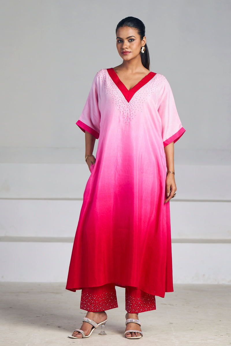 Red Printed Kurta with Fine Pleatig in Yoke and Pants