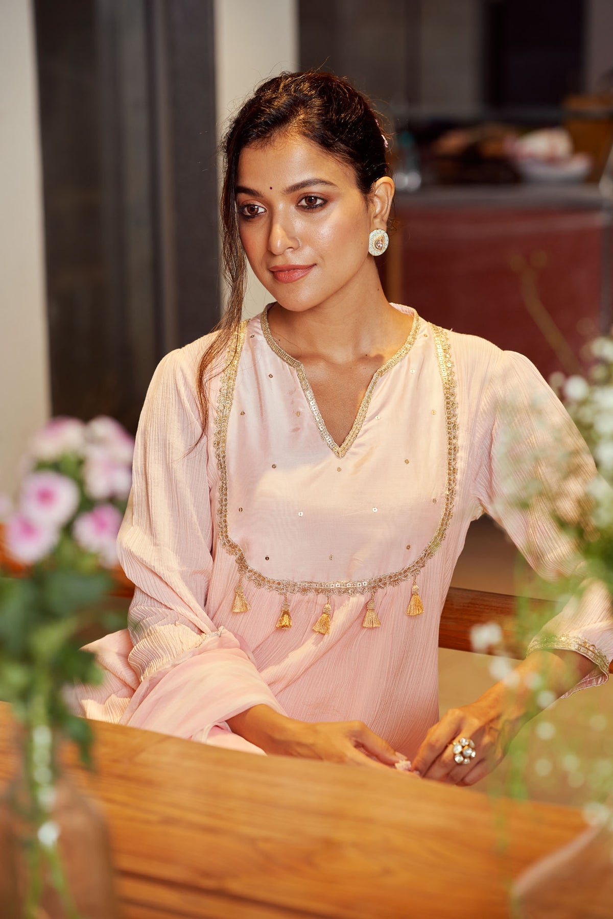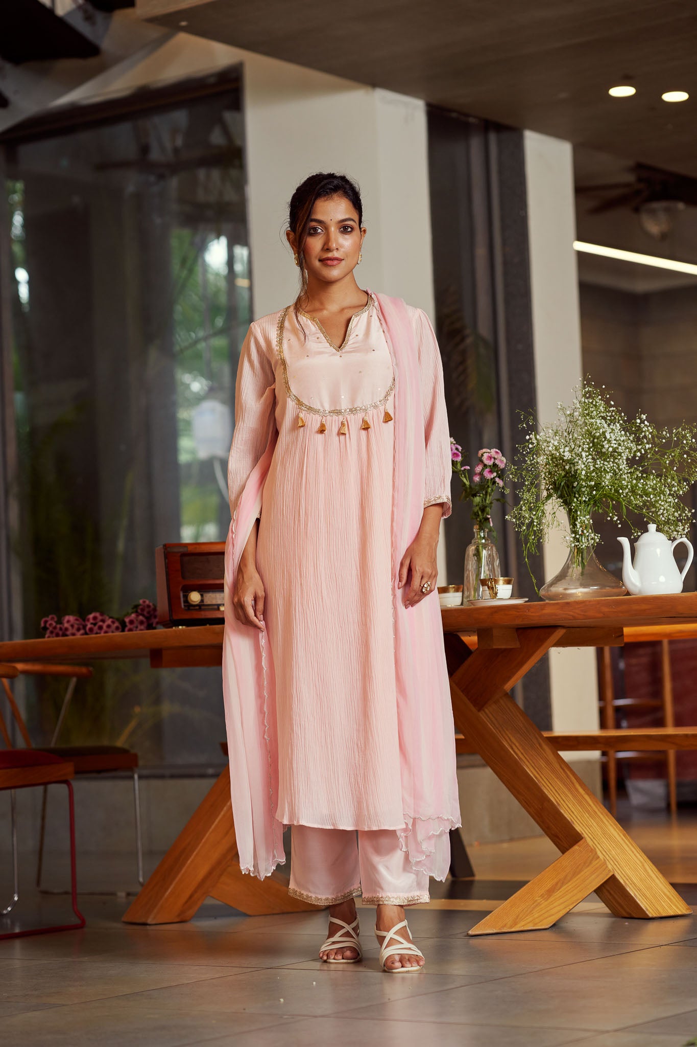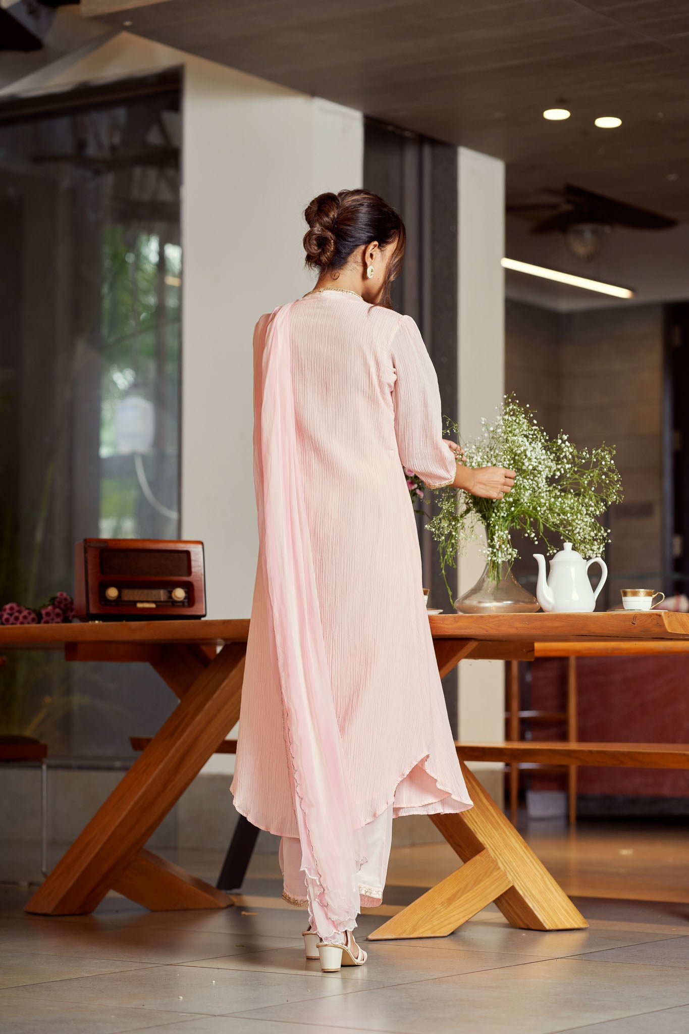 Blush Pink Mul Chanderi Festive Dupatta Set