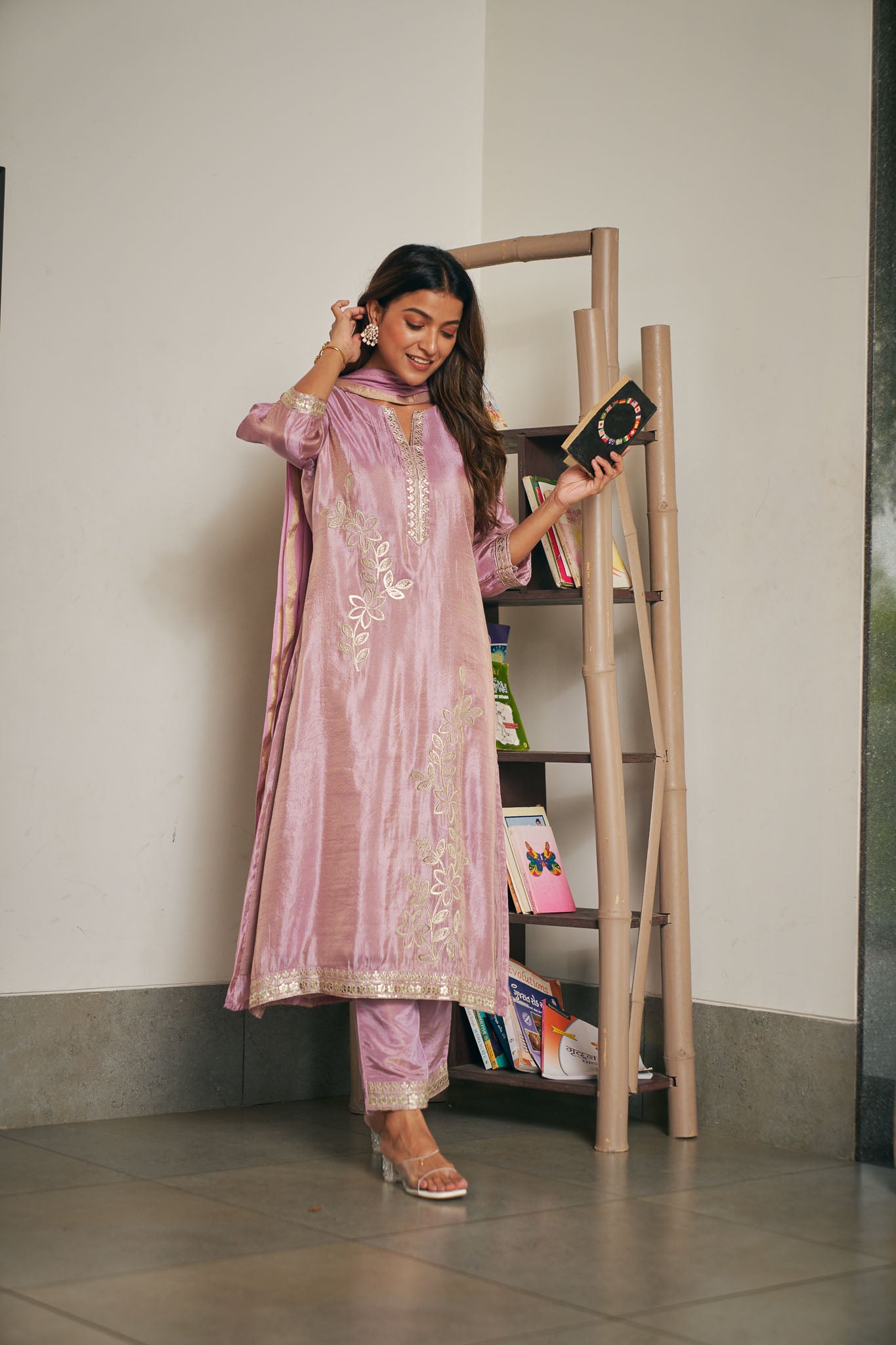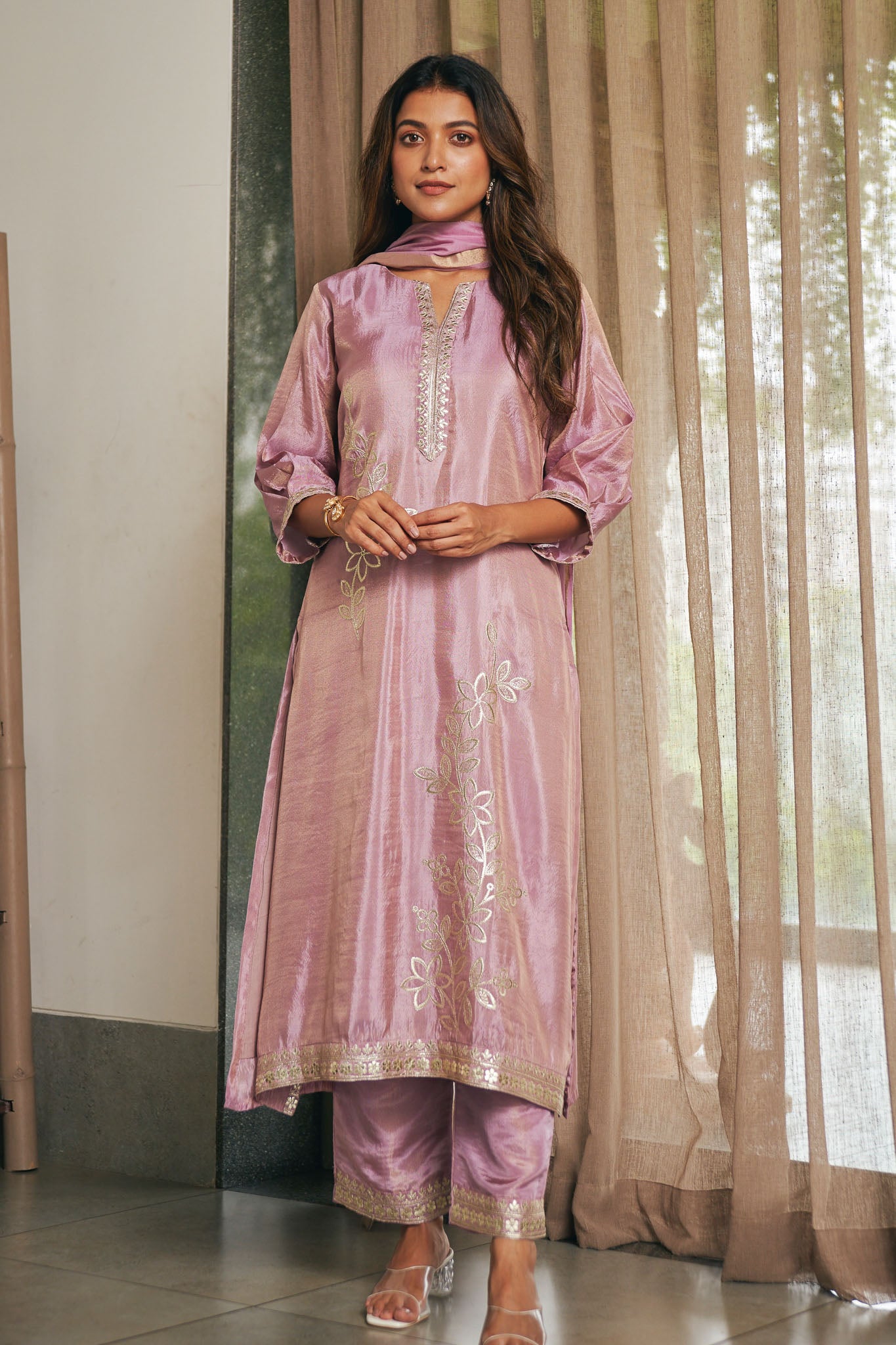 Lilac Bloom Tissue Festive Kurta Set