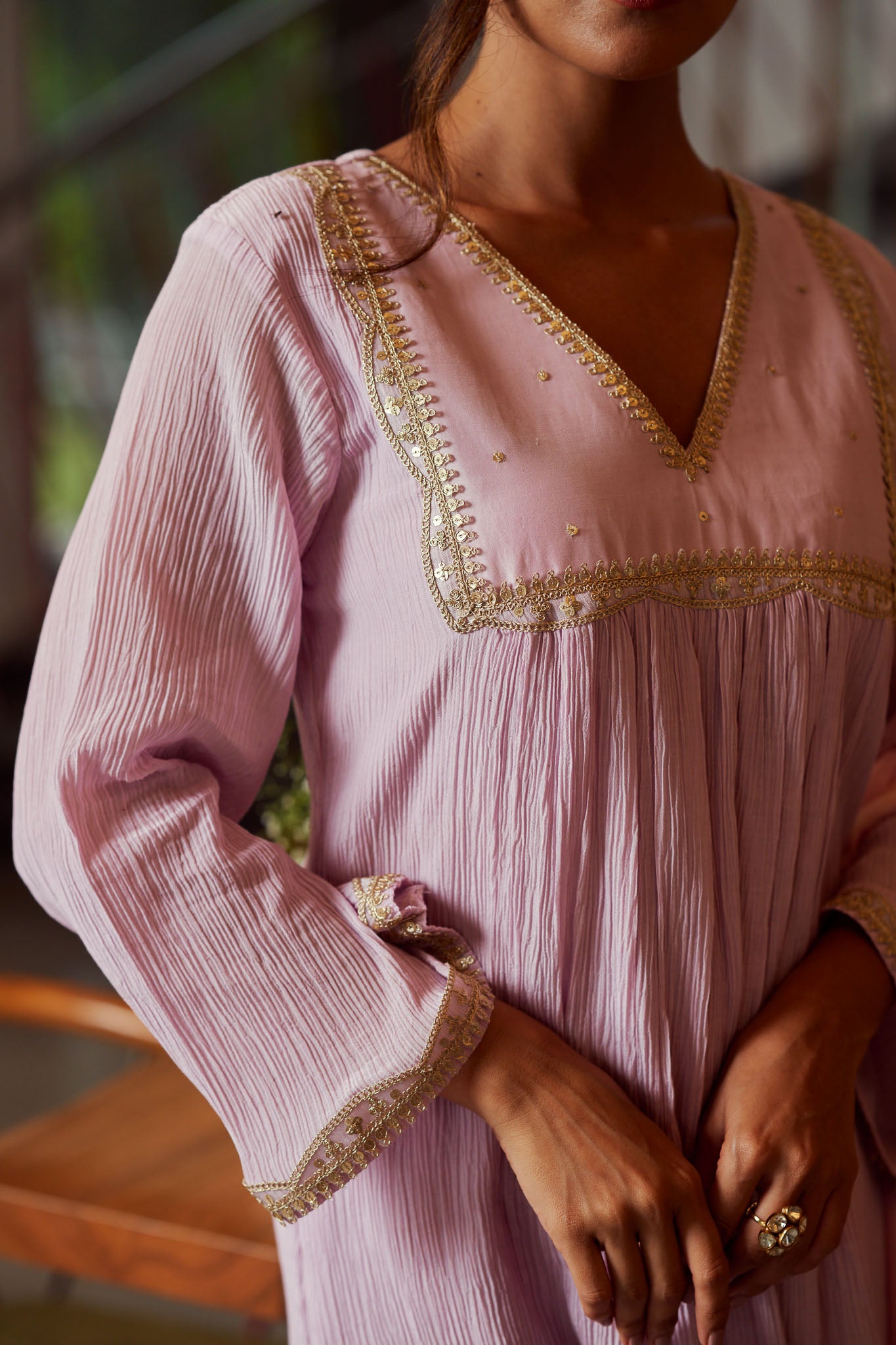 - Bell Sleeves Lace Emblishments