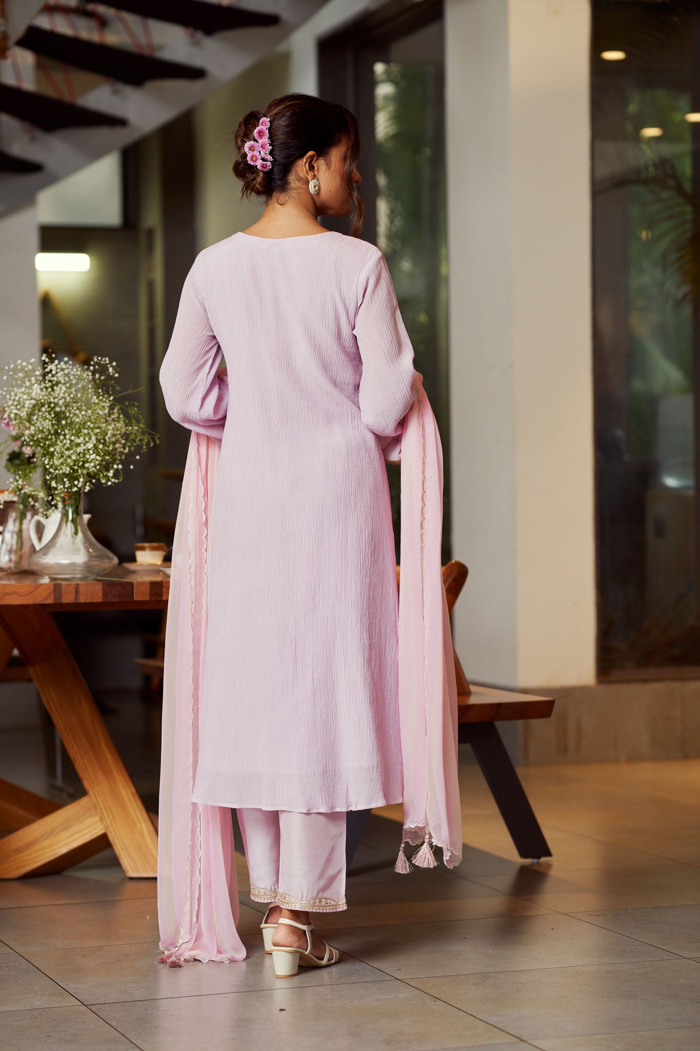 - Paired With Pants And Striped Dupatta