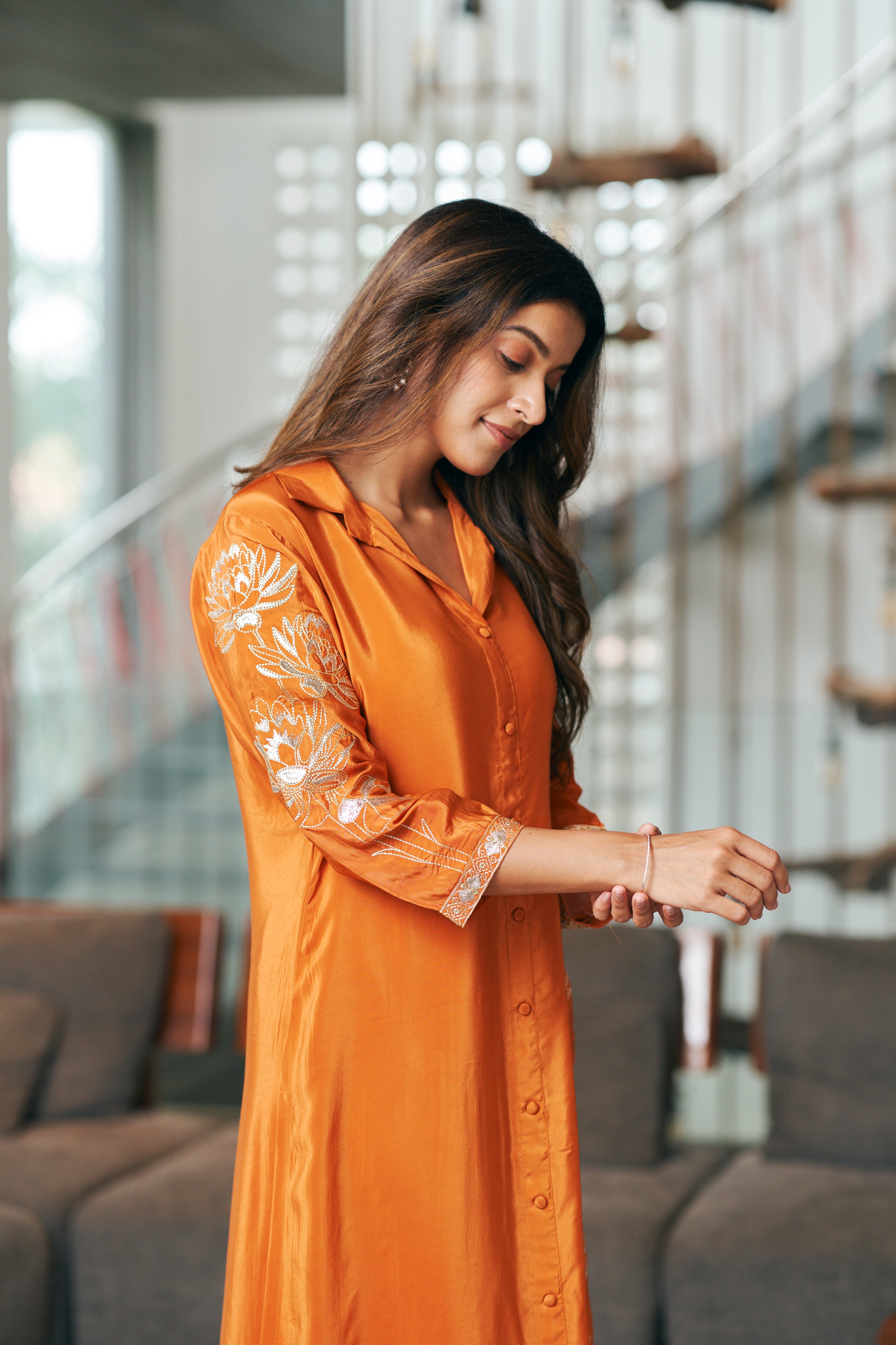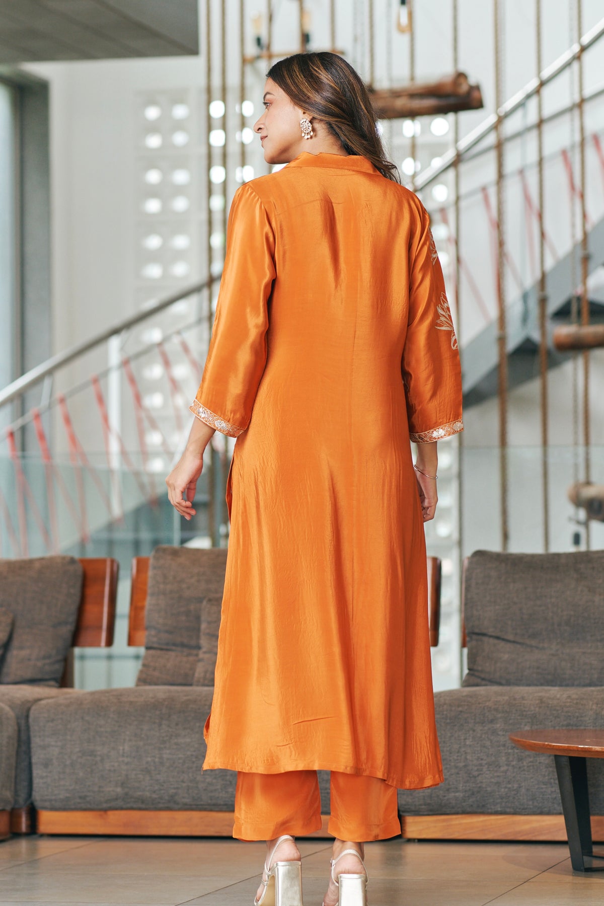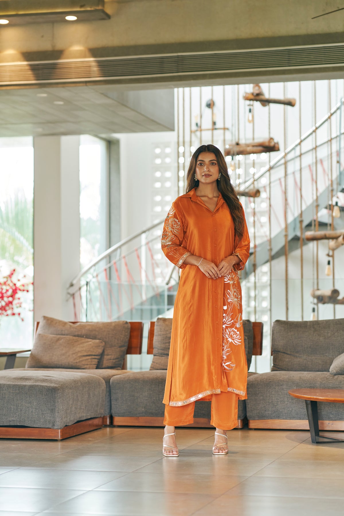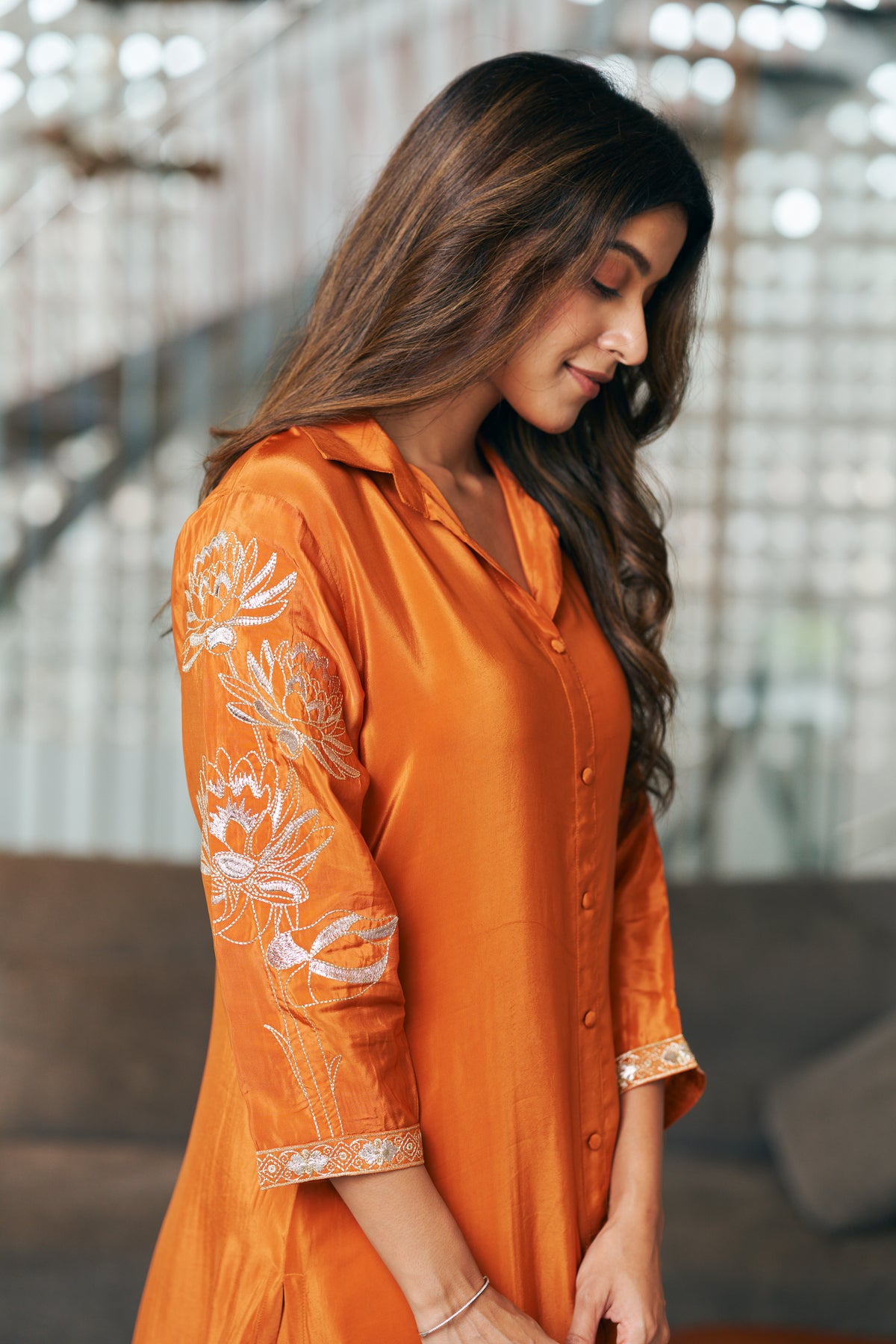 • Step into effortless elegance with our Rust Orange Natural crepe Co-ord Set, crafted in a luxurious, flowy natural fabric that feels as soft as it looks.