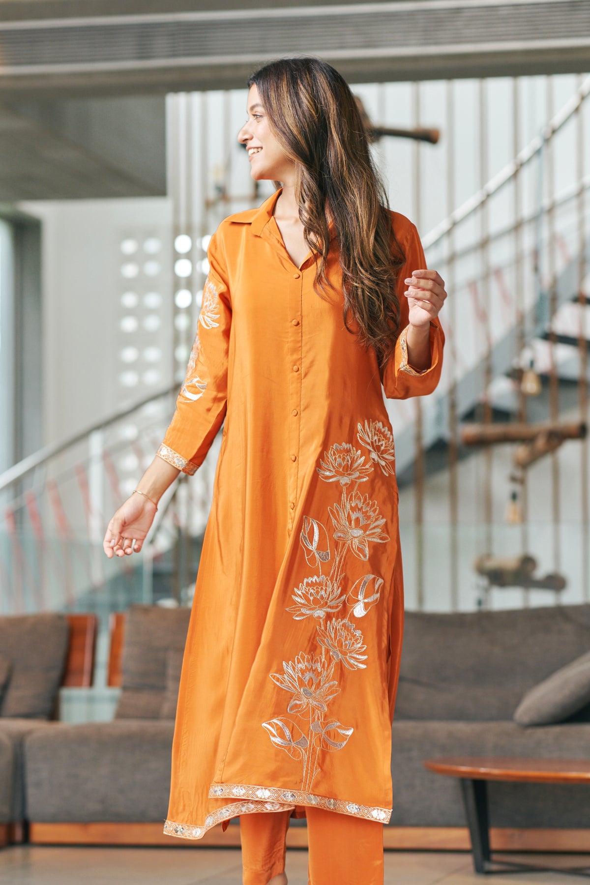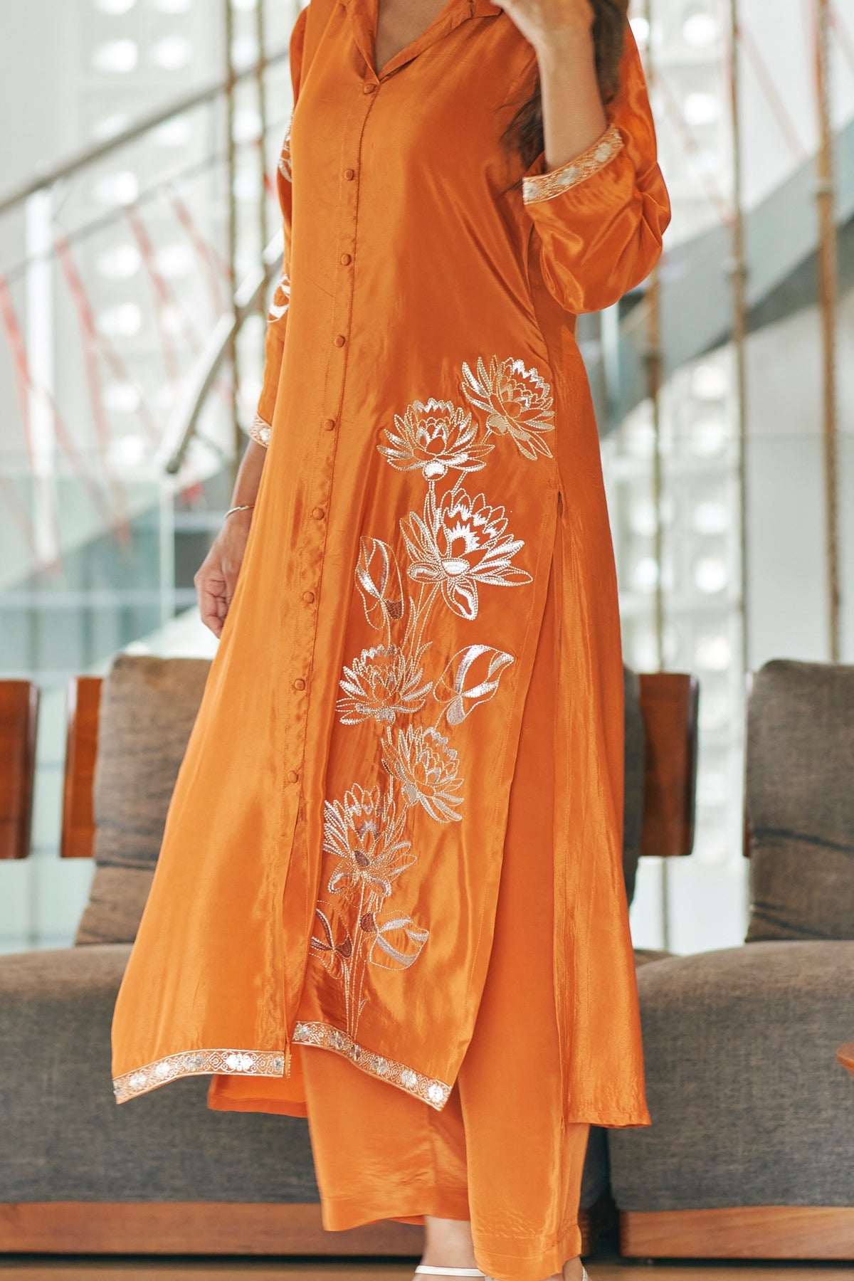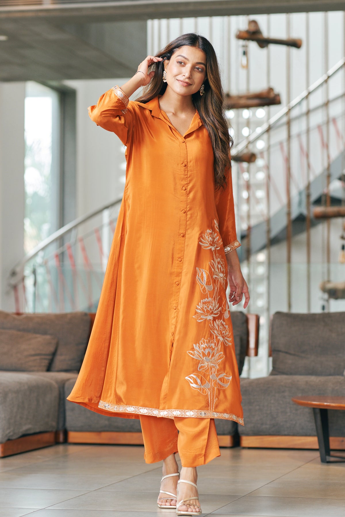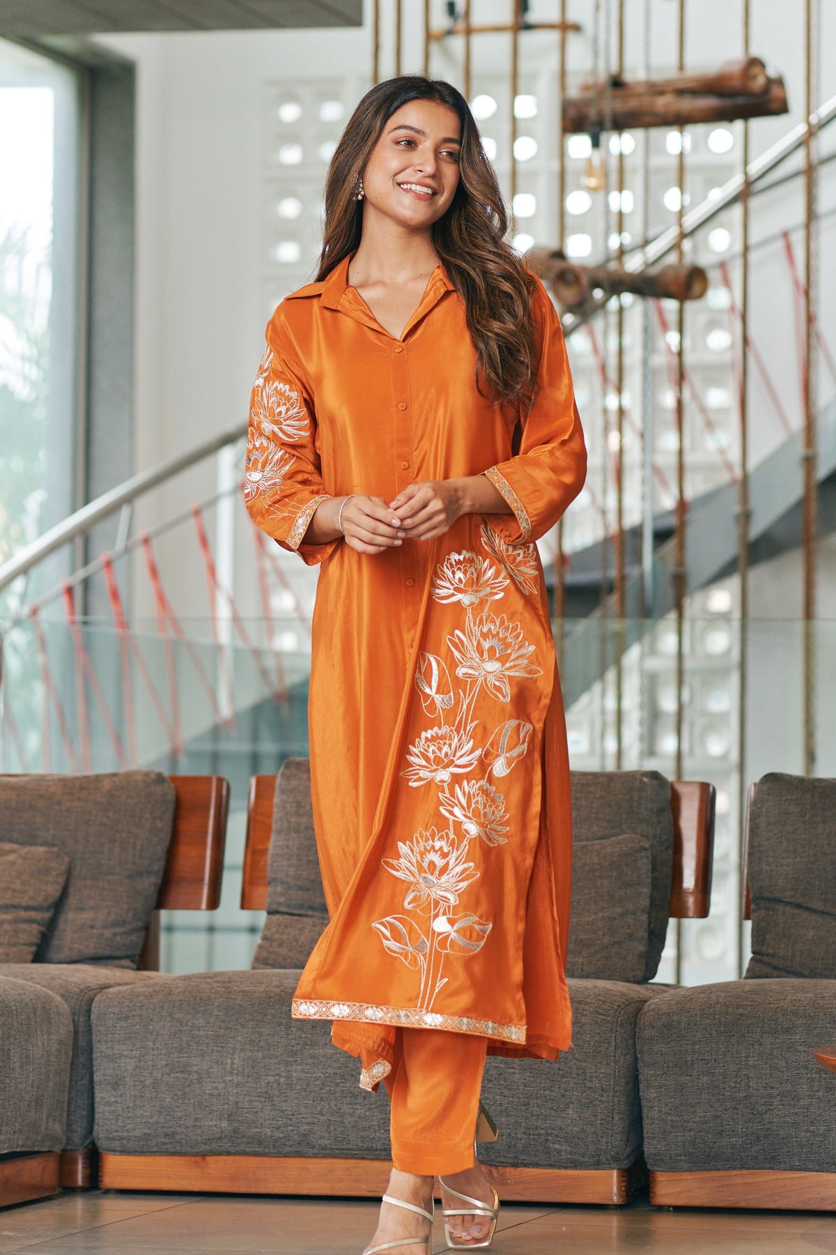 • Step into effortless elegance with our Rust Orange Natural crepe Co-ord Set, crafted in a luxurious, flowy natural fabric that feels as soft as it looks.