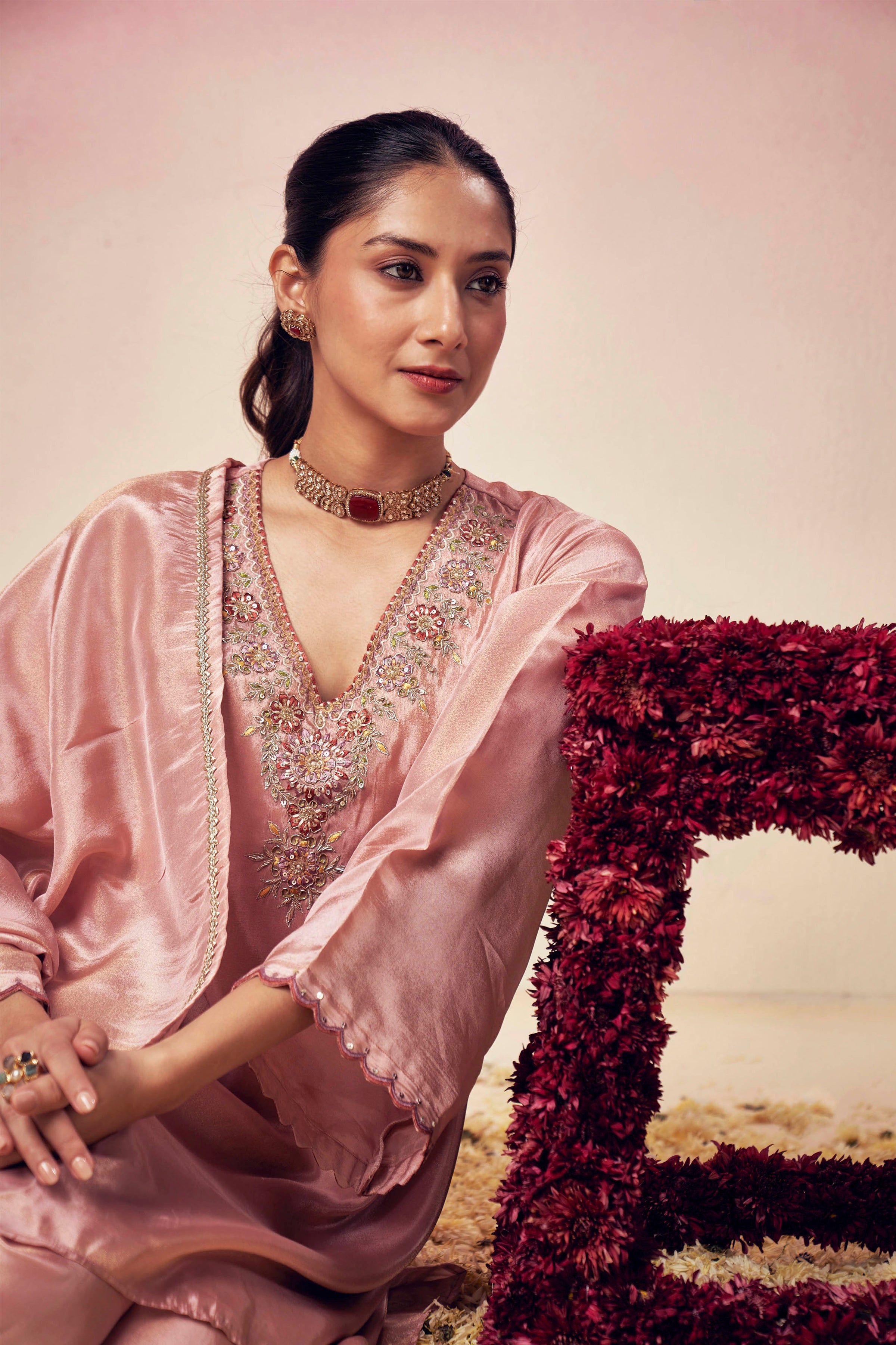 Chintz Rose Royal Neck Suit