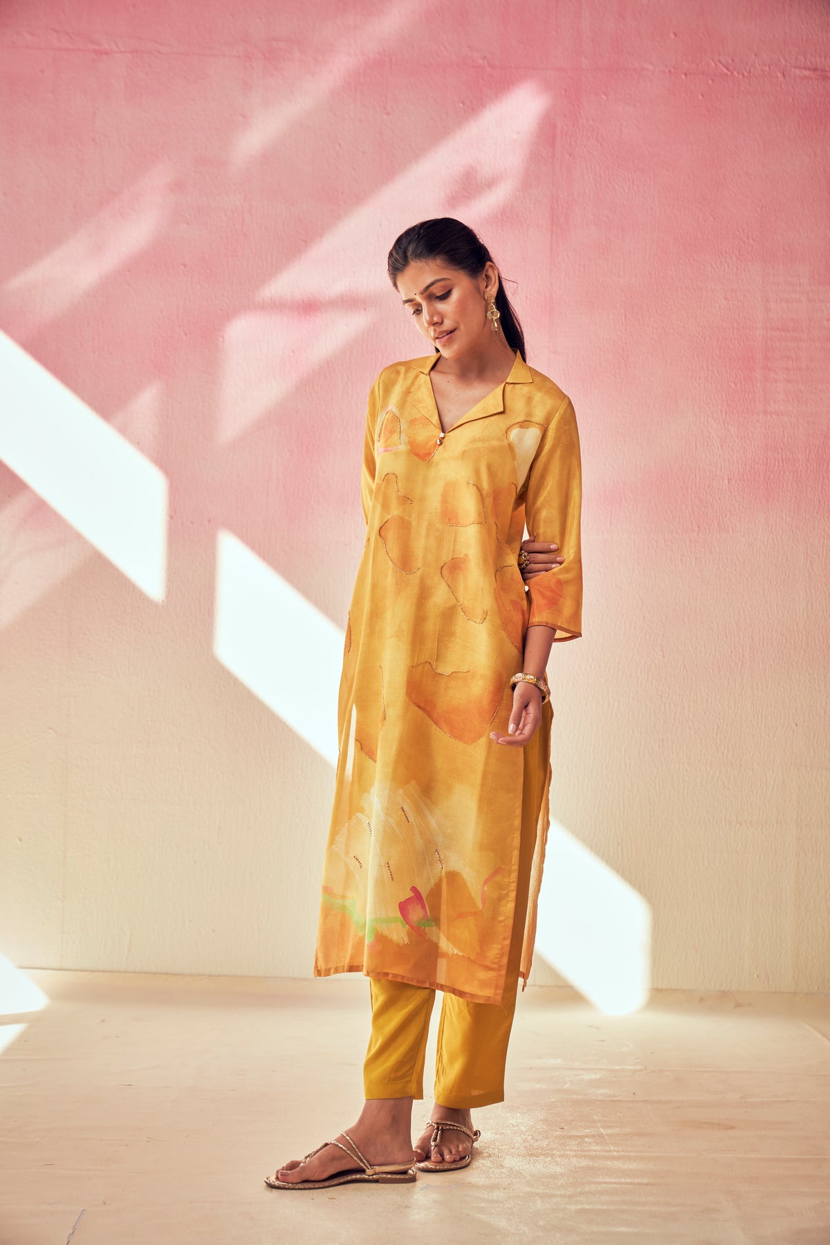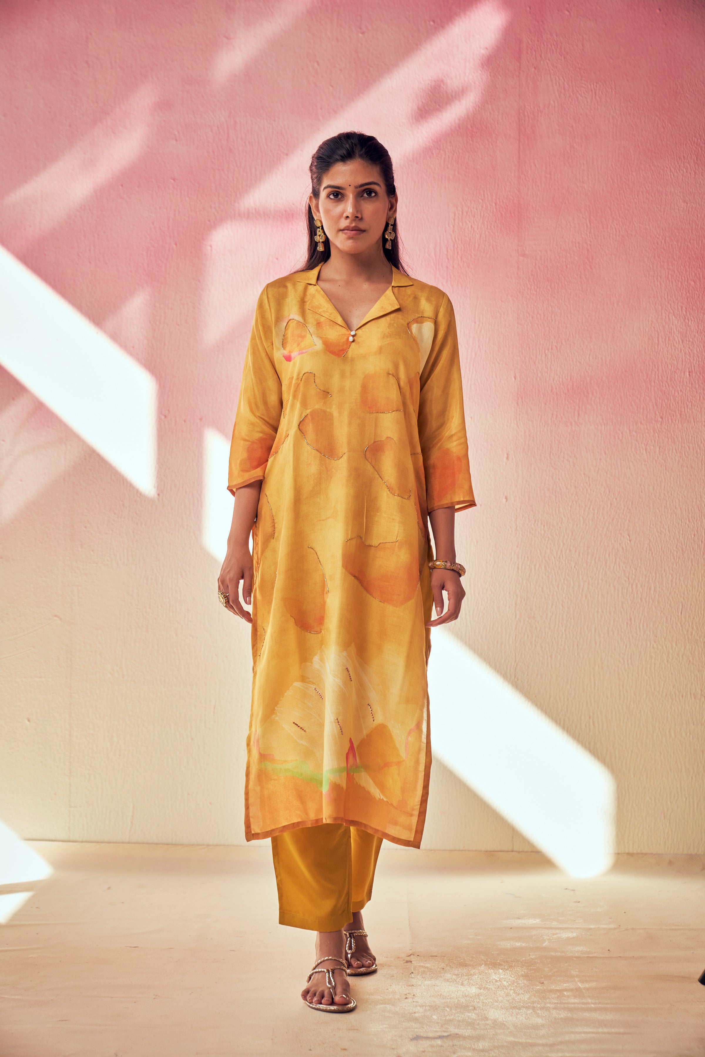 Honey Gold Abstract Print Pant Set