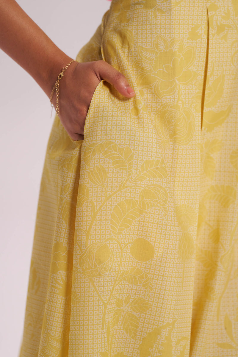 Yellow Halter Neck Cotton Midi Dress