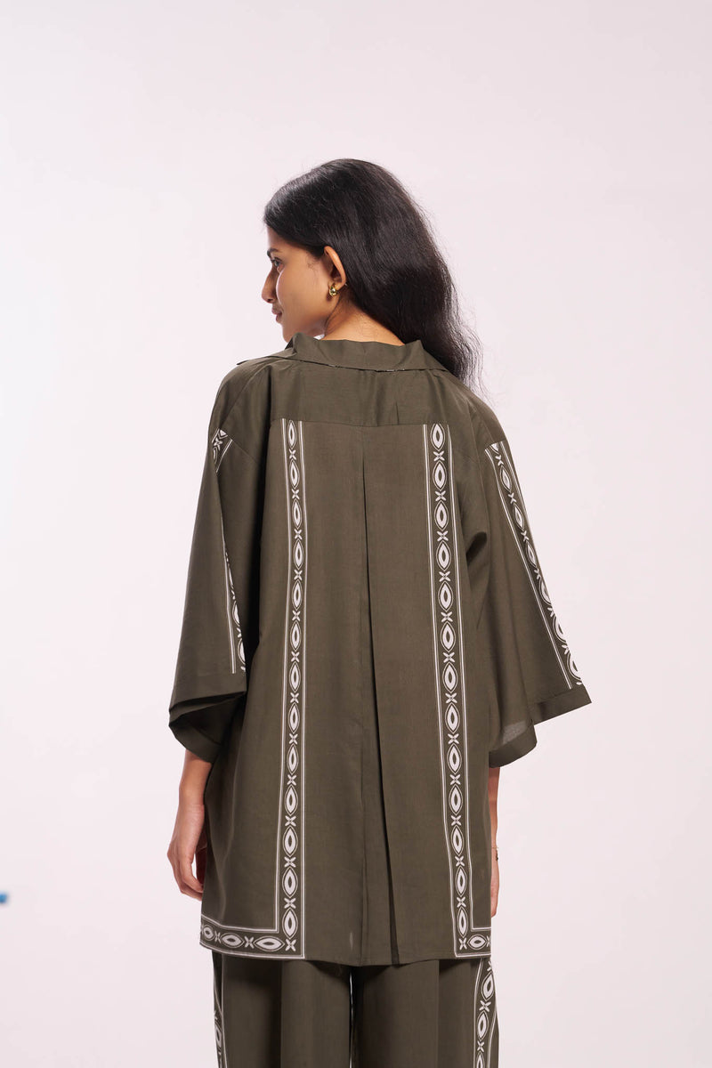 Cotton Embroidered Placket Short Kurti Co-ord Set