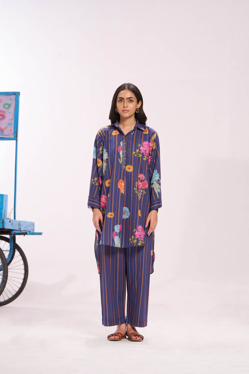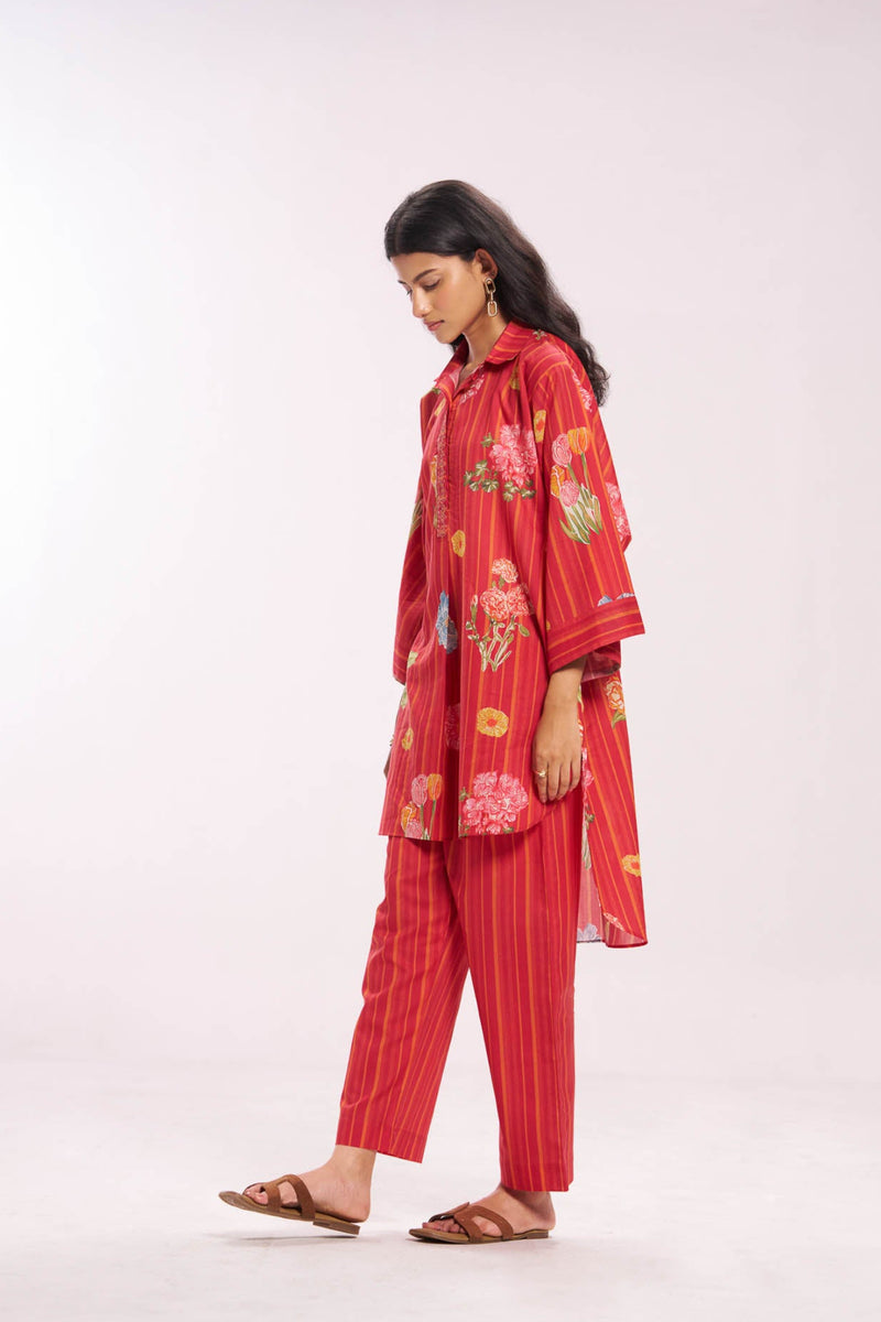 Abstract Floral Placement Printed Cotton Co-ord Set