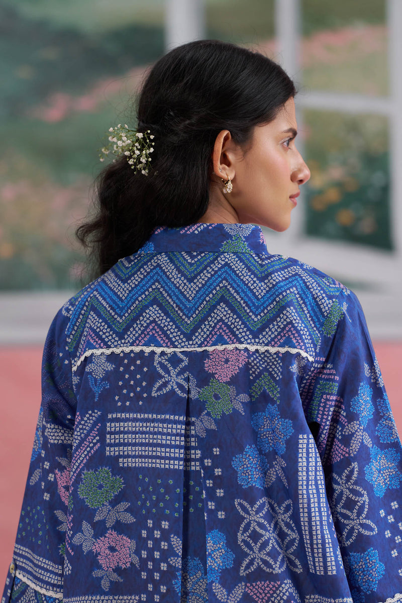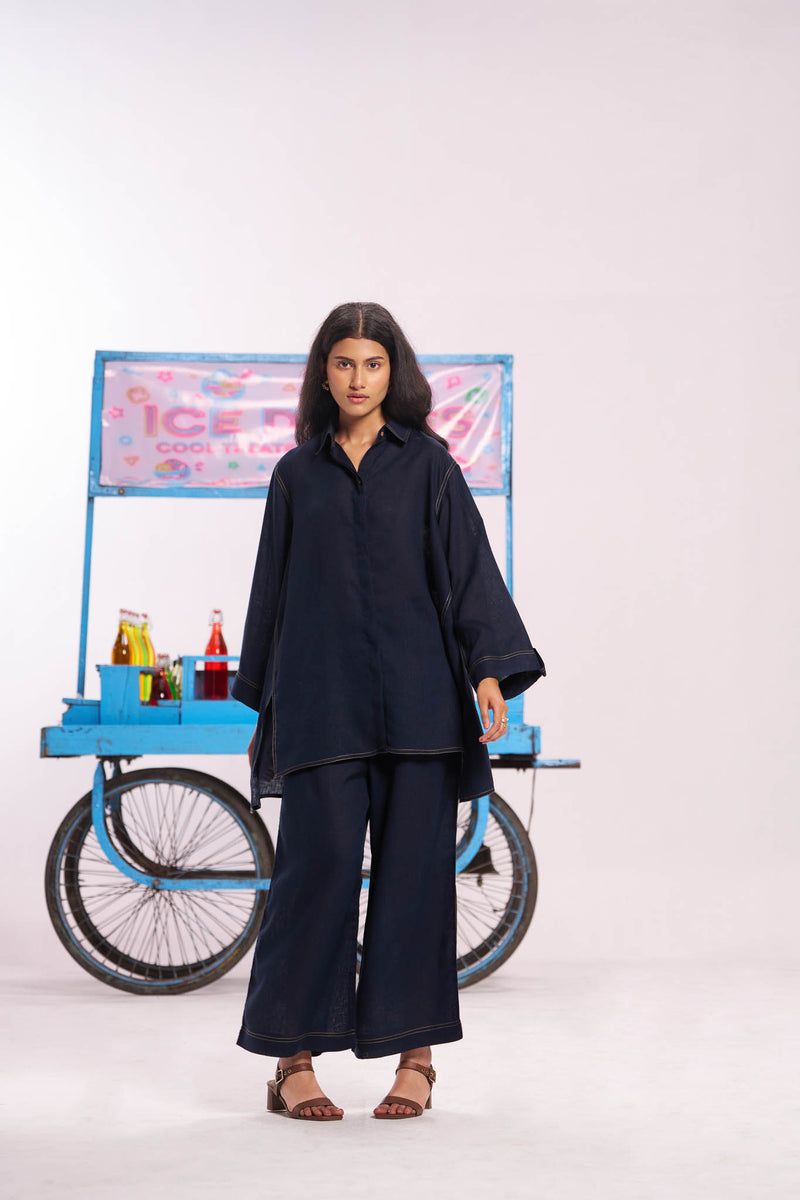 Blue Loose Fited Cotton Short Kurti Co-ord Set
