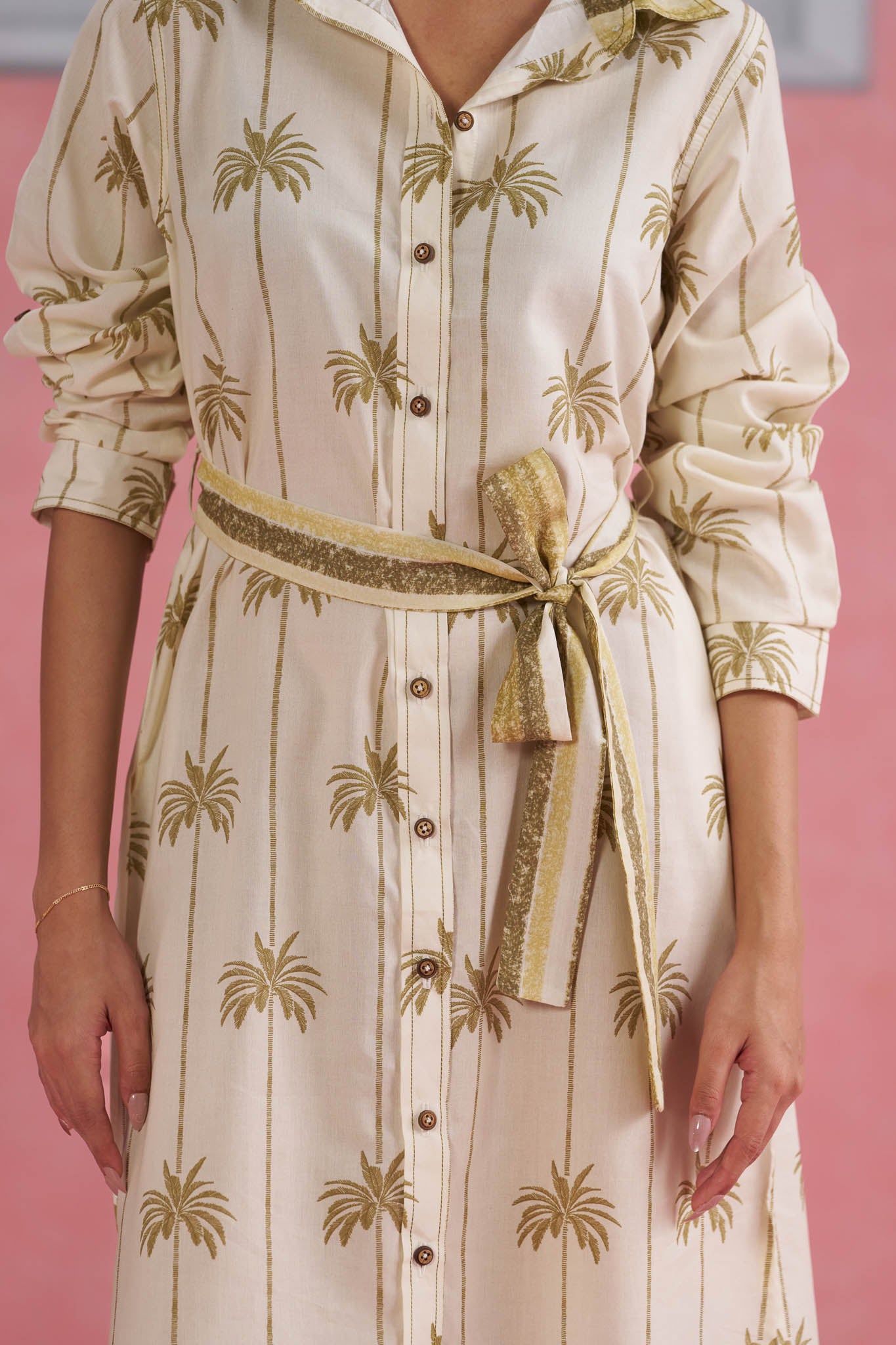 Top Details: Classic coconut-printed cotton shirt dress